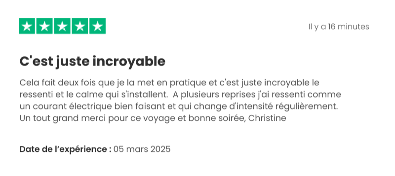 "En tant que mère de deux jeunes enfants, il est souvent difficile de trouver du temps pour moi. Ce guide m'a permis de m'accorder des moments de bien-être sans avoir à sortir de chez moi. Les exercices sont clairs et les bénéfices ont été presque immédiats : plus de calme, moins de tensions et un meilleur sommeil. Une véritable bouffée d'air frais dans mon quotidien mouvementé !"